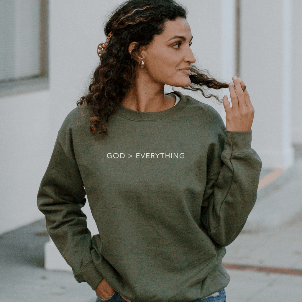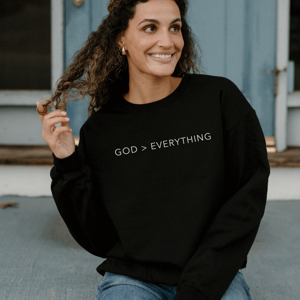 Check out our "God > Everything" Christian Sweatshirt – a meaningful and stylish way to wear your faith. Featuring an inspiring "God is Everything" design, this sweatshirt serves as a daily reminder of your devotion while keeping you cozy and comfortable. Made with premium Gildan fabric, this sweatshirt combines unmatched softness, durability, and a perfect unisex fit for all-day wear.