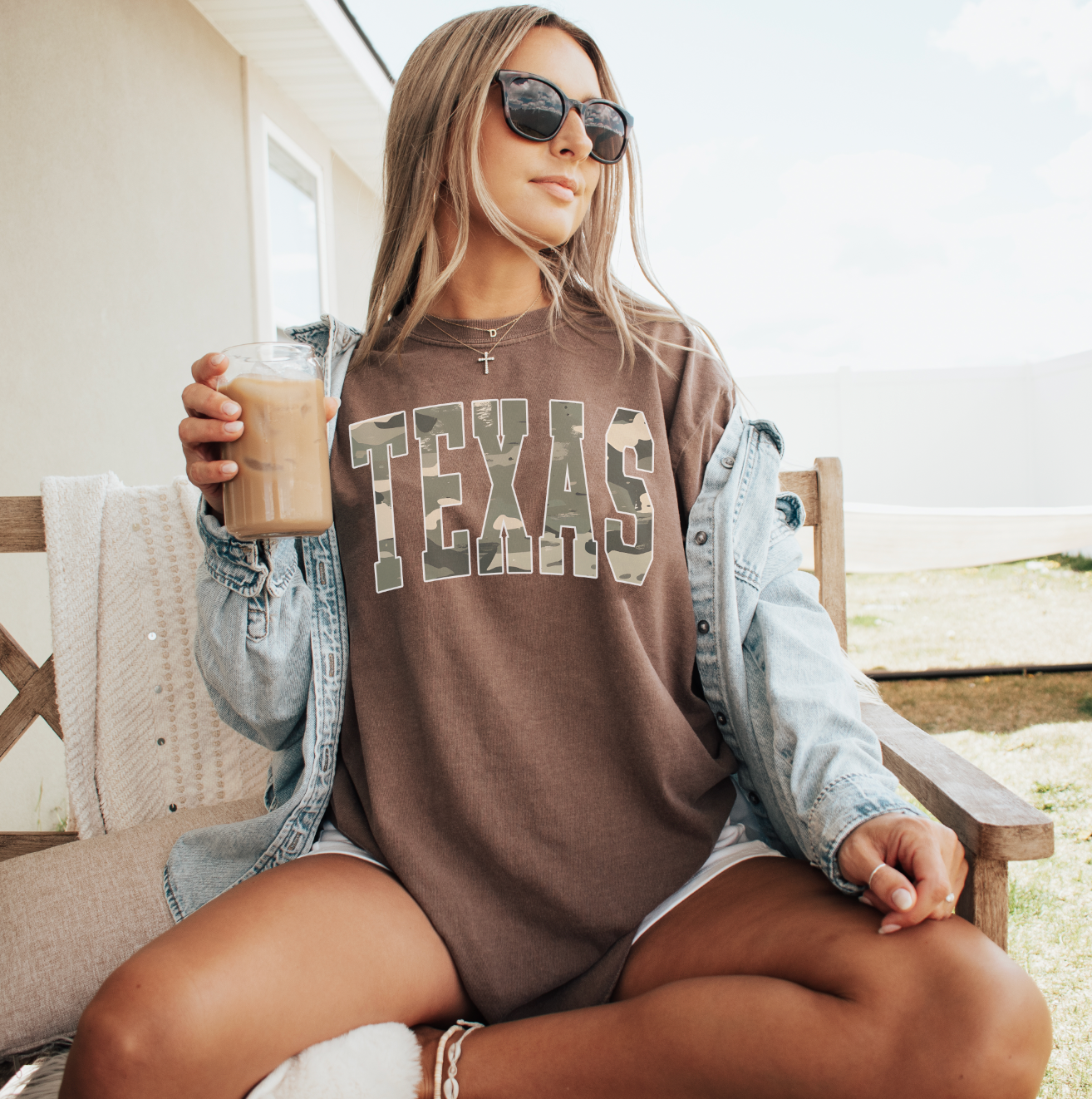 Show your spirit in camo style! Our Custom Camo College Letter Tee lets you personalize the bold collegiate lettering with your favorite word, name, or team — up to 12 characters max. Whether it’s your school, city, nickname, or a fun phrase, this shirt turns heads with its cool, neutral camouflage font and ultra-soft Comfort Colors fabric.
