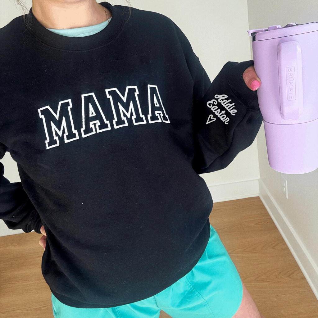 Embroidered Mama Sleeve Text Sweatshirt – Melody Faye Wholesale