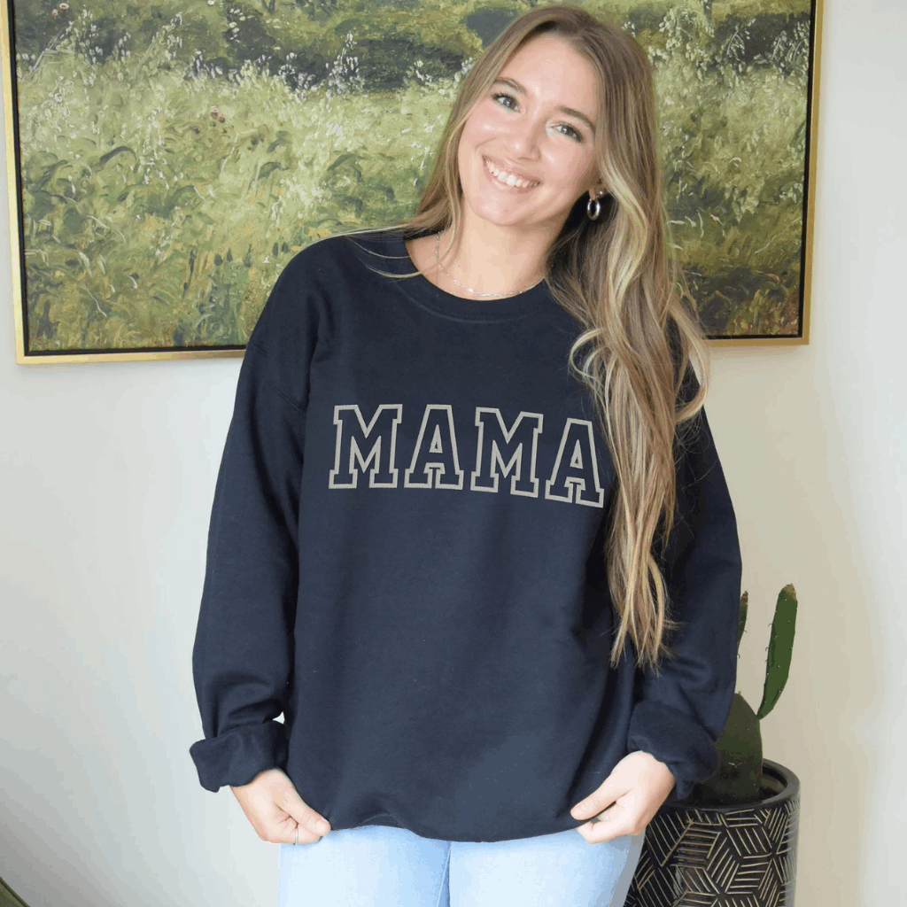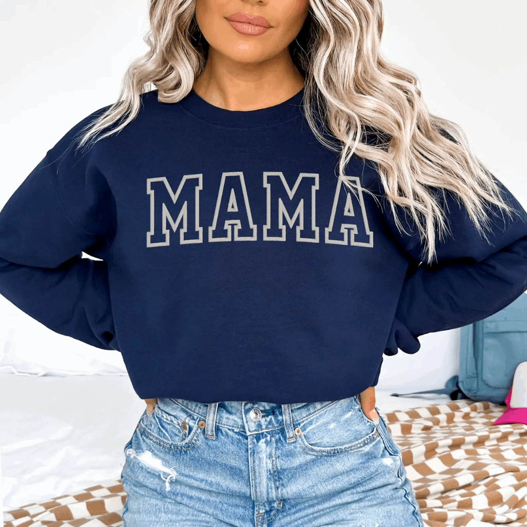 - This listing is for 1 mama sweatshirt with embroidered text.