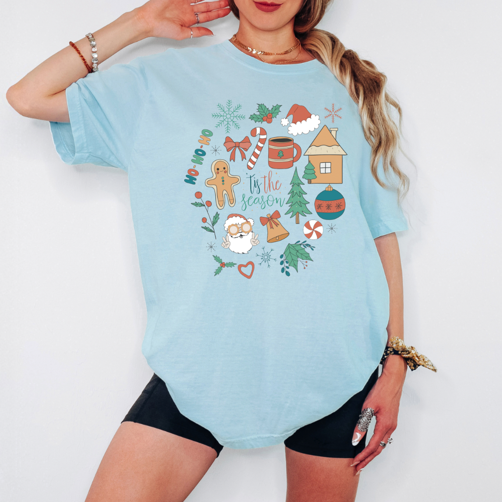 Celebrate the magic of the holidays with our Christmas Doodle Comfort Colors Tee — a festive mix of all your seasonal favorites, from gingerbread men and candy canes to cozy mugs and Christmas trees. Each doodle is hand-drawn with love, bringing that playful holiday spirit to life in soft, cheerful colors.