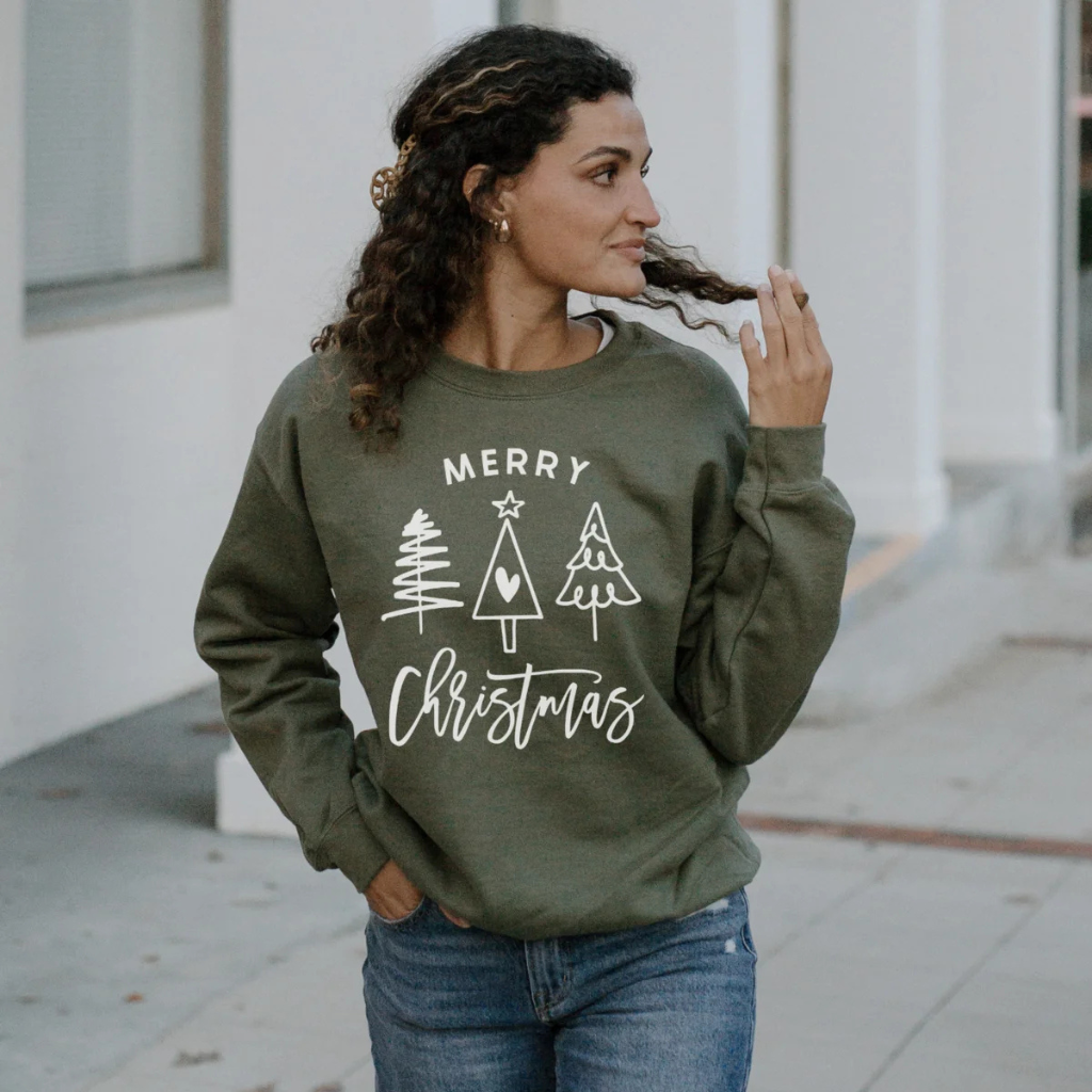 Merry Christmas Three Trees Sweatshirt – Melody Faye Wholesale