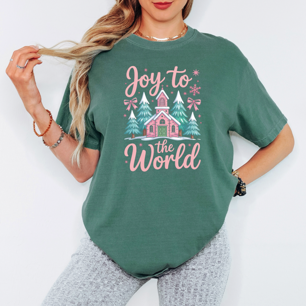 Celebrate the season in style with our Joy To The World Pink Christmas Comfort Colors Tee! This festive graphic tee combines a soft, vintage-inspired Comfort Colors® fit with a joyful holiday design, making it the perfect shirt for Christmas gatherings, winter lounging, or pairing with your favorite cozy layers.